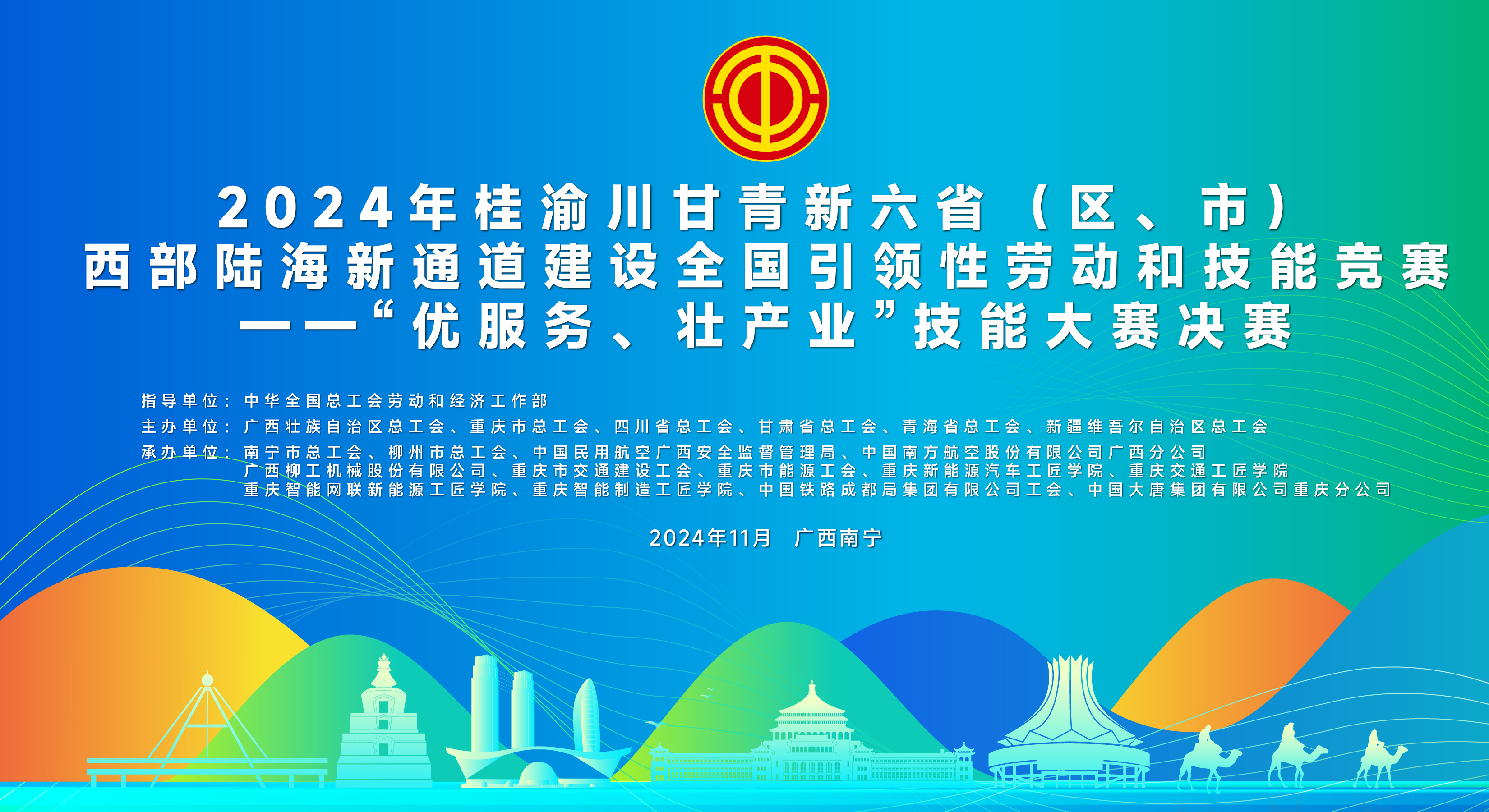 为进一步强化通道沿线工会的有效联动,推动西部陆海新通道建设全国引领性劳动和技能竞赛深入开展,助力高水平共建西部陆海新通道,促进区域经济高质量发展,广西壮族自治区、重庆市、四川省、甘肃省、青海省、新疆维吾尔自治区等 6省(区、市)总工会经研究决定,联合开展 2024 年桂渝川甘青新六省(区、市)西部陆海新通道建设全国引领性劳动和技能竞赛。