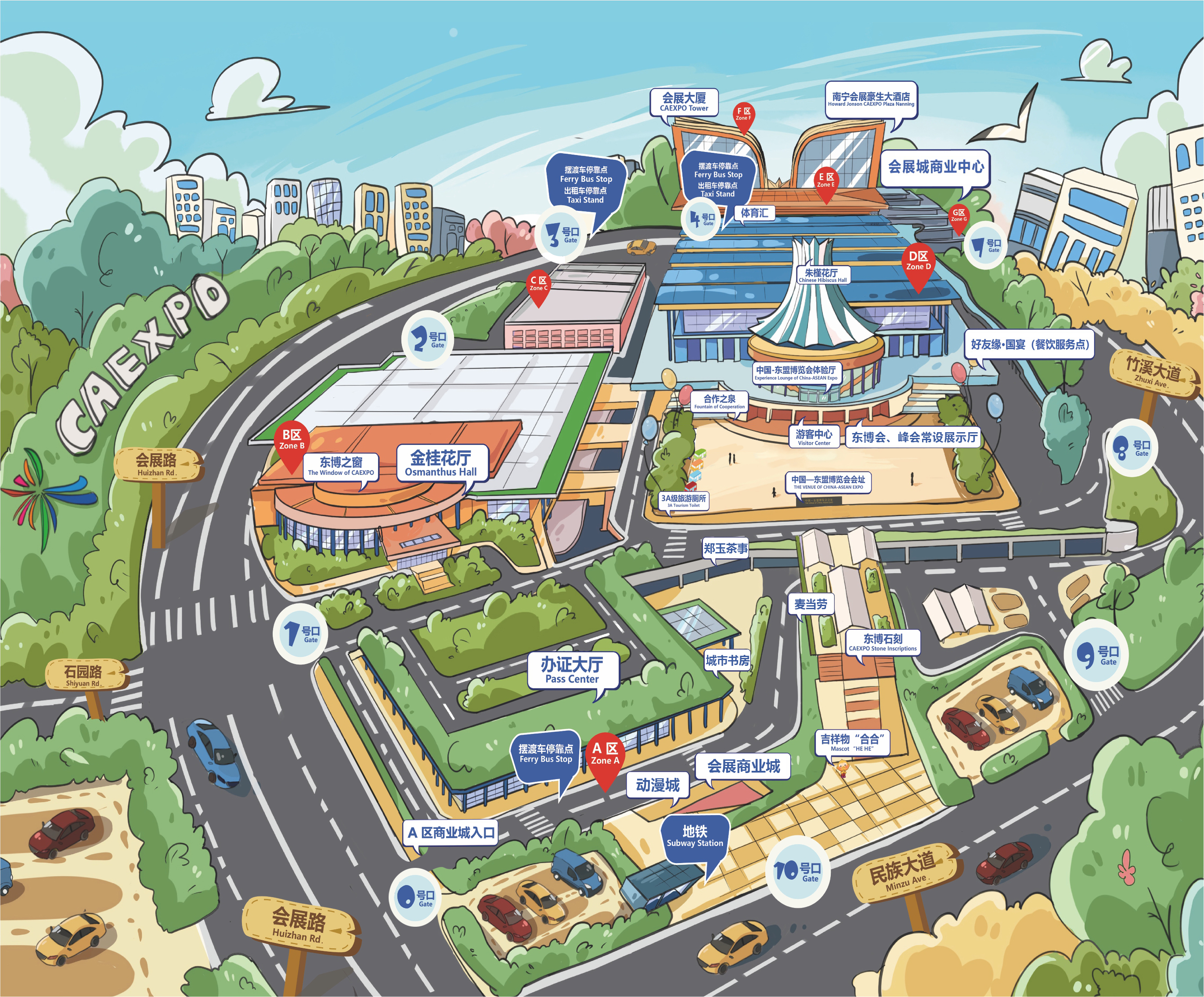 南宁国际会展中心配套便利店、展厅餐饮点、麦当劳、会展广场饮食餐区以及冷饮自动售卖机。除此之外,展期还将引进各式餐饮商家入驻,为观众提供更多选择。